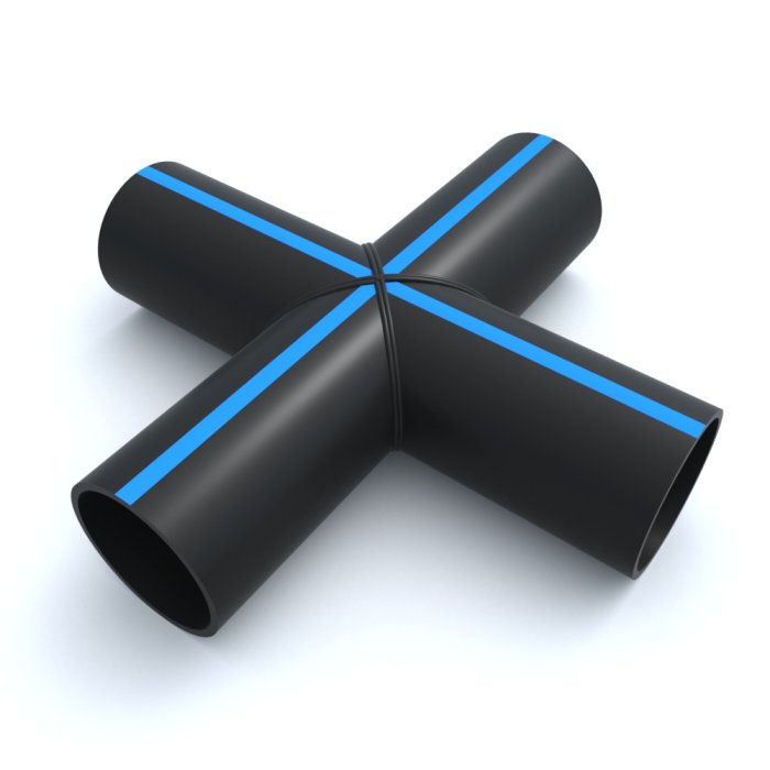Крестовина сварная равнопроходная ПНД 90º 560x450x1460 мм SDR-13,6 широко используется при монтаже полиэтиленовых труб и трубопроводов. Крестовина сварная равнопроходная изготавливается по ТУ 22.21.29-001-65568415-2018 из полиэтилена низкого давления марки ПЭ100.